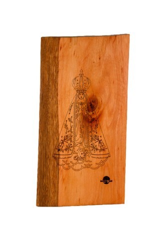 PLACA NOSSA SENHORA RÚSTICA GRAVADA A LASER é feita com madeira de reflorestamento, podendo ter alterações nas medidas informadas.